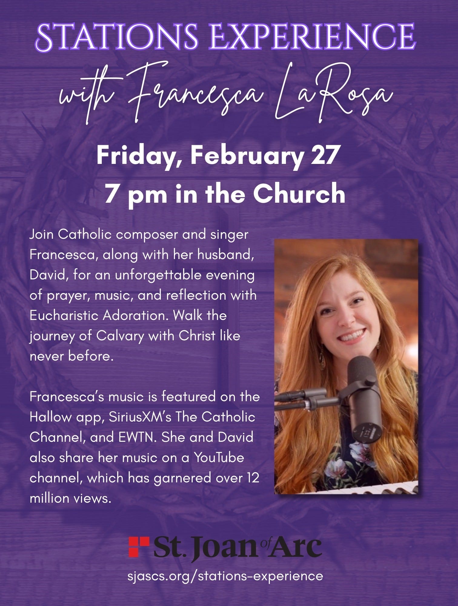 Francesca LaRosa began her musical journey at the age of nine, playing at Mass with her father. By the end of high school, she had recorded and composed two albums of songs for the Holy Liturgy. Francesca pursued music education at Ball State University, excelling in vocal competitions and volunteering at her parish Newman Center, deepening her call to serve God through music.